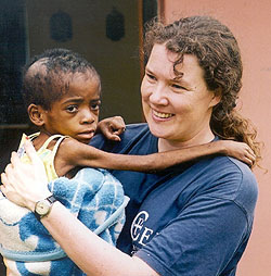 Susanne 20 Jahre später in Südafrika mit dem Aids kranken Waisenkind Nomadla, das im AIDS Hospiz - das durch den CED unterstützt wird - Fürsorge und medizinische Hilfe erfährt |